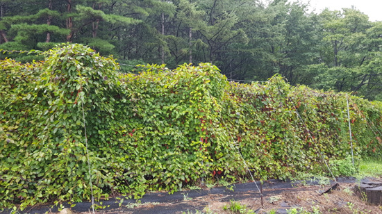 내려선 박마을은 한 달 전과 사뭇 달랐다. 푸른빛을 띠던 사과는 붉게 변했고, 불그스름하여 열매가 도드라져 보이지 않았던 오미자 덩굴은 온통 짙은 선홍빛을 띠고 있다.