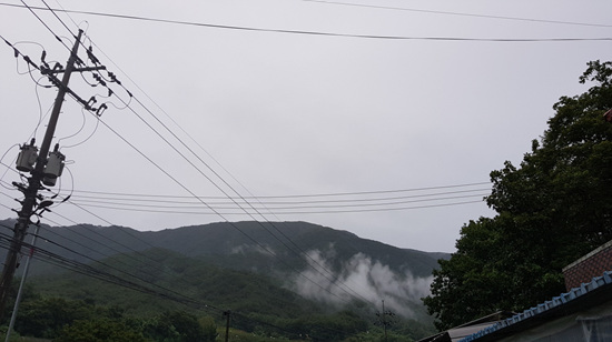 대미산까지 오르는 동안 잠잠했던 빗줄기는 정상에 이르자 다시 흩뿌린다. 빗줄기는 하산하는 내내 우의 밖으로 드러난 바지 하단과 등산화를 흠뻑 적신다. 부리기재에서 박마을로 하산하는 길은 초반이 급경사지만 한번 지났던 곳이라 그런지 빗속에서도 모두들 차분하게 잘 내려간다.