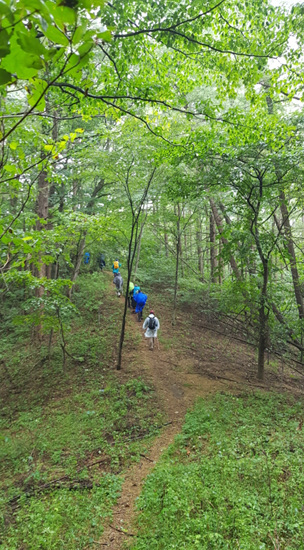 나무와 수풀로 둘러싸여 조망은 없지만 소나무와 떨어진 솔잎들로 은은한 솔내음이 가득하다. 사람의 손때가 덜 간 숲속의 길은 도심의 무더위에 지친 대원들에겐 더 할 수 없는 치유의 공간이다.