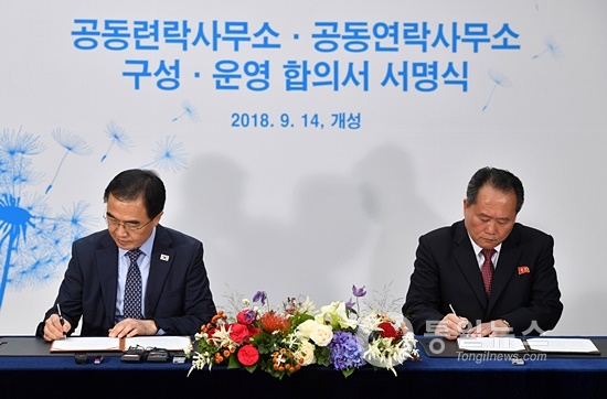 서명은 이날 오전 개성 공동연락사무소 개소식 직후에 이뤄졌다.