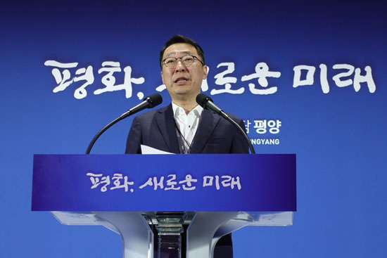 윤 수석은 “대통령의 말씀처럼, 우리는 전쟁 공포의 일상화에서 평화의 제도화로 전환하고 있다. 우리가 얻고자 하는 것은 평화다. 불가역적이고 항구적인 평화다”라며 “더 이상 새로운 선언이나 합의를 바라는 것이 아니라 합의를 바탕으로 새로운 시대를 향해 나아가는 것”이라고 기조를 밝혔다.
