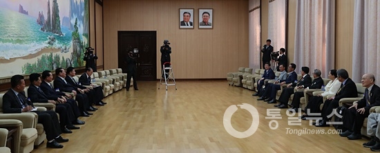 문재인 대통령의 평양행에 동행한 공식수행단과 특별수행단은 18일 김영남 최고인민회의 상임위원장 등을 만났다. 하지만 여야 3당 대표들은 끝내 면담장에 나타나지 않았다.