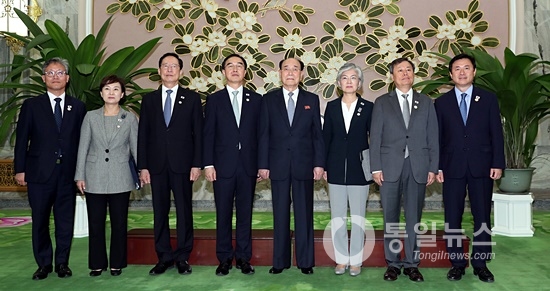 먼저, 이날 오후 3시 45분 평양 중구역 만수대의사당 대회의장에서 정부수행단 6명과 일부 특별수행단이 김영남 최고인민회의 상임위원장을 만났다.
