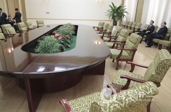 여야 3당 대표들. 북측 안동춘 최고인민회의 부의장 면담장 안 나와