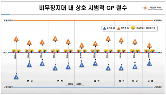 이는 4.27‘판문점선언’에 명시된 ‘비무장지대의 평화지대화’를 실현하는 실질적인 조치로, 남북이 군사분계선(MDL)으로부터 각각 2km씩 총 4km가 떨어지게 돼 우발적 충돌 위험을 근본적으로 감소시키는 효과가 있다. 지금까지 남북 GP 간 우발적 무력충돌은 80여 차례 있었다.