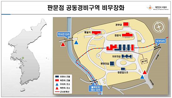 국방부는 “정전협정에 따라 판문점 공동경비구역을 완전 비무장화함으로써, 정전협정의 정신에 부합되는 평화.화합의 장소로 전환된다”고 기대했다.