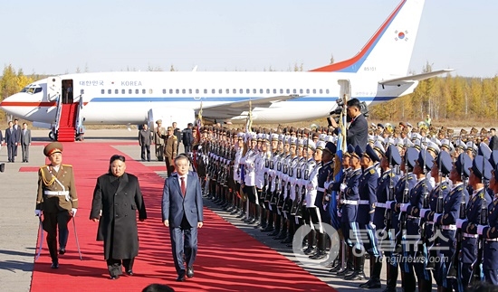 문 대통령 : “이번에 제가 오면서 새로운 역사를 좀 썼지요. 평양 시민들 앞에서 연설도 다하고.”