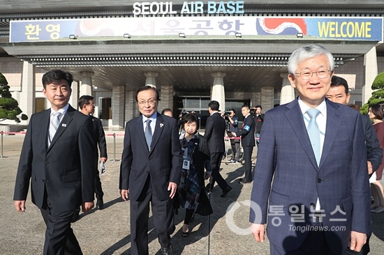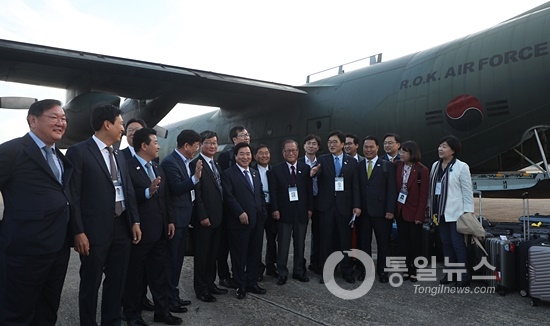 조명균 통일부 장관 등을 대표단으로 한 방북단은 이날 오전 8시 20분경 공군 수송기 3대에 나눠타고 성남 서울공항을 출발, 서해 직항로를 통해 약 1시간 뒤 평양국제비행장에 도착한 것으로 보인다.