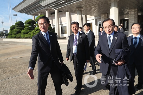 평양 체류 기간 남북 당국 간 협의가 진행될 것으로 예상되는 데 대해, 조 장관은 “평양공동선언을 속도감 있게 이행할 수 있는 그런 계기를 만들겠다”며 “평양공동선언 이행을 위한 여러 가지 회담 일정이라든가 후속 사업들의 기본 방향에 대해서 논의가 있을 것”이라고 말했다.