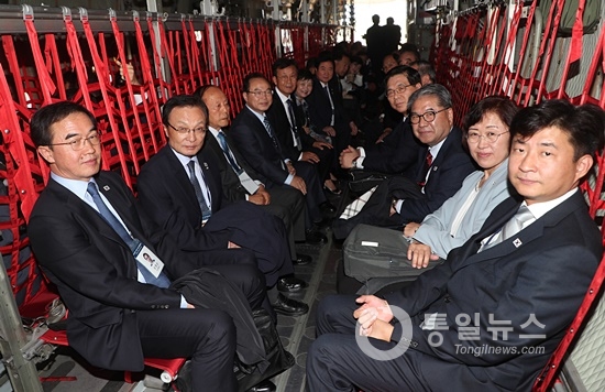 방북단을 태운 공군 수송기 3대는 이날 오전 8시 20분경 성남 서울공항을 출발, 서해 직항로를 통해 약 1시간 뒤인 오전 9시 58분경 평양국제비행장에 도착했다.