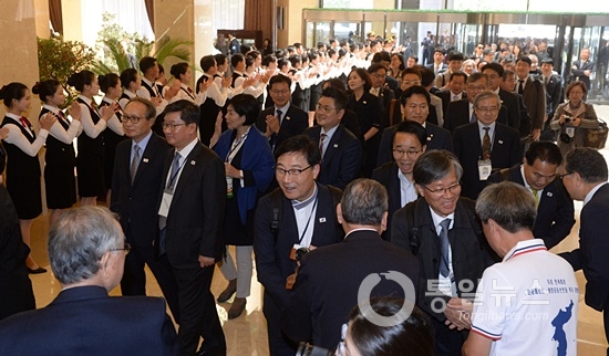 남측 방북단을 환영하기 위해, 리선권 조평통 위원장, 박명철 6.15공동선언실천 북측위원회 위원장, 안동춘 최고인민회의 부의장, 차희림 평양시 인민위원장, 원길우 체육성 부상, 강지영 조선종교인협회 회장 등이 영접을 나왔다.