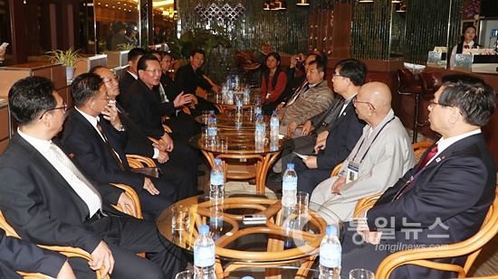 10.4민족통일대회에 참가한 남측 방북단은 5일 오후 6시 평양 고려호텔에서 당국, 국회, 지자체, 6.15민족공동위, 종교계 등 5개 부문별 모임을 각각 가졌다.
