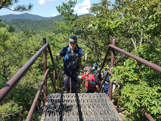 황장산 등산로는 암릉과 바위가 많아 위험하고 밧줄을 잡아야 하는 곳이 많았는데 이제는 계단을 설치해 놓아 산길이 편안해졌다.