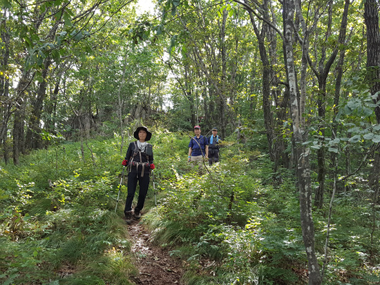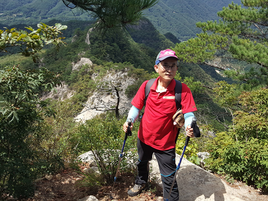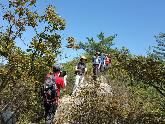점심식사를 마치고 계속 이어지는 아기자기한 암릉길에 구절초가 보이기 시작한다. 구절초를 보면 문의에서 구절초 농사짓는 정규원 대원 부부가 생각난다. 아마 다음 구간부터는 많은 구절초가 보일 것이다.
