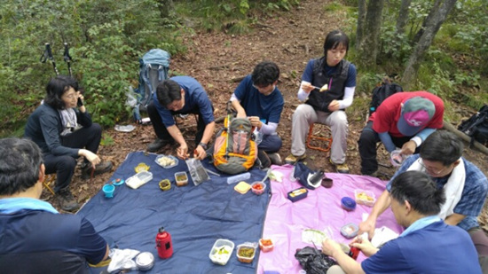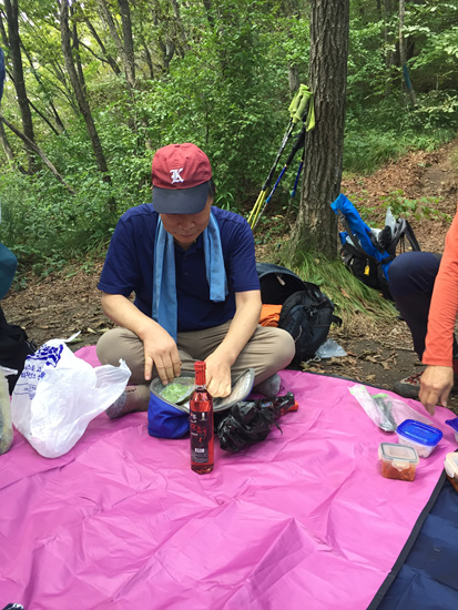 벌재에 도착하니 산행 중 만난 광주 나사모산악회에서 막걸리를 권해 두부김치를 곁들여 다들 맛있게 한잔씩 한다. 이 자리를 빌려 나사모산악회에 감사드린다.