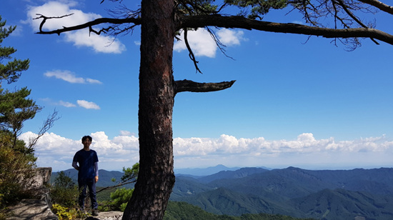 황장산 오르기 전 도착한 전망대는 소나무와 바위가 어우러져 멋진 풍경을 선사하고 멀리는 월악산 영봉이, 단양의 도락산은 지척으로 보인다. 가히 주위 풍광이 일품이다.