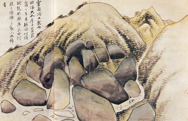 이 그림에 제발문(題跋文)을 보면 거대한 암석이 있는 영통동구의 느낌을 간접적으로 알 수 있다.