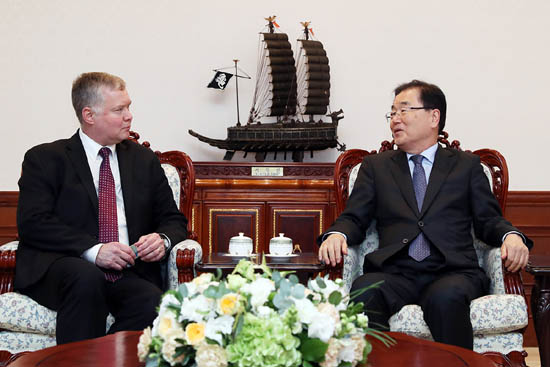 방한 중인 스티븐 비건 미국 국무부 대북정책특별대표가 30일 정의용 청와대 국가안보실장과 조명균 통일부 장관을 만나 의견을 나눴다.