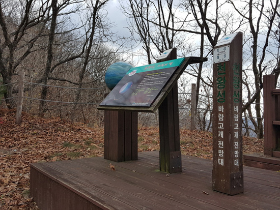 태양계의 크기와 상대적 거리를 직접체험 할 수 있도록 연화봉을 태양으로 해서 죽령휴게소까지 7km 구간을 실제 행성간 사이의 거리처럼 축적을 계산했다,