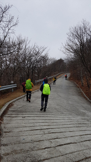 비와 눈이 섞여 진눈깨비가 날리는데 춥지 않은 날씨에 눈이 내리니 점차 고도가 높아지지는 것이 실감났다.