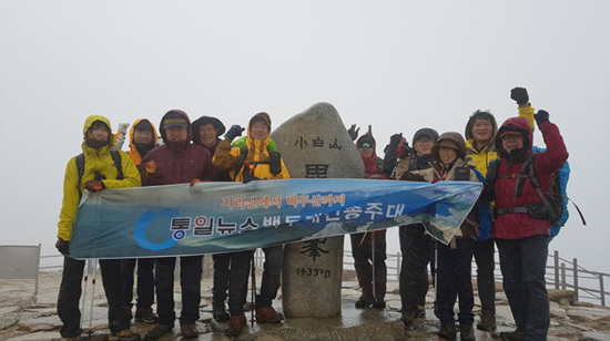 벅찬 가슴으로 눈바람 속에서도 주먹을 힘차게 쥐고 단체사진을 찍는다.
