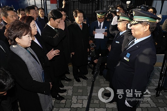각계의 환송을 받은 조사열차를 북측 판문역까지 운전하는 김재균 기관사는 출무신고를 했다.