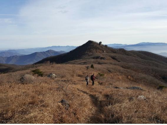 사방이 탁 트인 초원에 서니 가슴도 뻥 뚫리는 것 같다. 사방으로 보이는 경치도 환상적이다. 금강산도 식후경이라고 했던가. 배는 고프고 다리는 풀리고 졸음이 몰려온다. 아침을 먹기로 한 국망봉이 코앞에 보이는데도 걸음이 따라주지 않는다. 그저 쉬고 싶다.