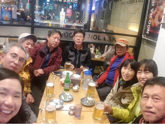 이번 산행은 여유가 넘친다. 시간도 많고 체력도 방전되지 않았다. 풍기읍내에 있는 영주칠향계 식당에서 주문한 삼계탕에 소주 막걸리를 마시고 버스에 올라 사당에 도착해 뒤풀이까지 전원이 함께 했다. 좋구먼!