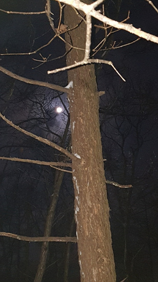 음력 시월 보름을 갓 지난 둥근달이 앙상한 나뭇가지 사이로 눈 덮인 봉우리를 비추고 있다. 하얀 눈과 밝은 달 온천지가 환하다. 랜턴을 끈다.