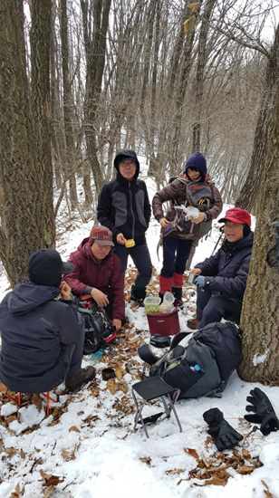 눈 위에 자리를 깔고 각자 도시락을 꺼낸다. 김장김치와 수육, 굴무우나물, 된장국, 푸짐한 아침상이다. 점점 발끝이 시리고 저려온다, 빠르게 자리를 털고 일어난다. 털장갑을 껴도 아려오는 손끝은 쉬이 따뜻해지지 않고.