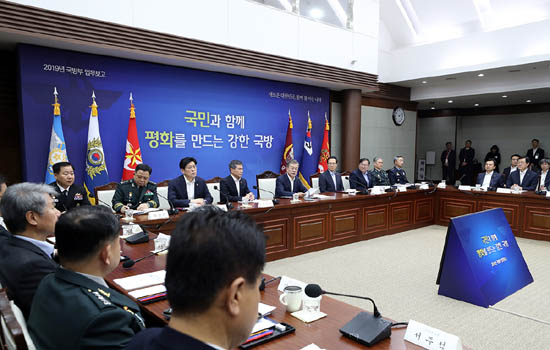 이날 2019년 국방부 업무보고 자리에서 문재인 대통령은 모두발언을 통해, “지난해까지 한반도는 긴장과 대치로 일촉즉발 전쟁위기의 상황이었다. 불과 1년 만에 남과 북이 한반도전쟁 종식을 선언하고, 대화를 통한 평화의 시대를 열었다”고 짚었다.