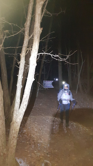 3:26 마구령 도착. 거의 쉬지 않고 달려왔다. 지친 체력에 간단한 야간식이라도 하며 숨을 돌려야 할 때다. 대간길 왼쪽에서 불어오는 차가운 바람은 쉴 곳을 쉽게 내주지 않는다.