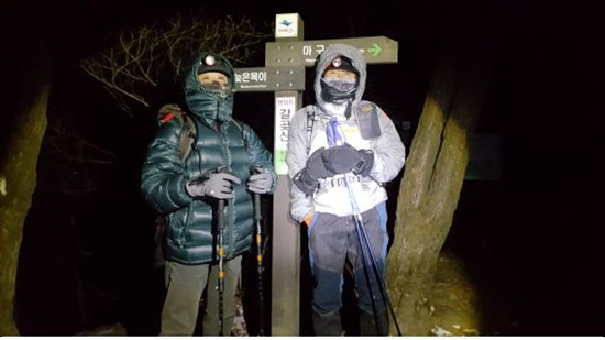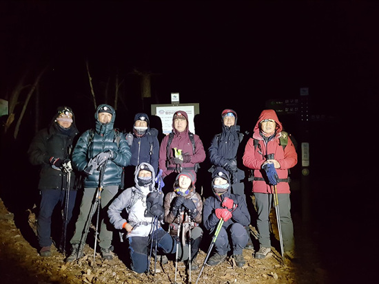 그랬던 산행계획은 박명한, 이민우 대원이 동참하면서 돌연 철야 산행으로 바뀌고 뒤이어 이종규 대원이 합류한다. 처음 계획을 잡을 때만 해도 이렇게 추울 줄은 예상 못 했을 것이고 다분히 의욕도 앞서지 않았을까.