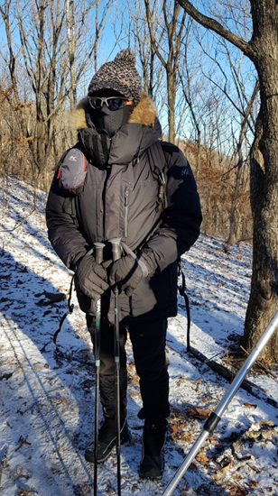 얼어서 쩍쩍 갈라질 것 같은 뺨이며 이마는 어떻게 할 수도 없다. 살을 에는 추위에도 덮어쓴 털모자 아래 이마에는 땀방울이 맺히고 곧이어 살얼음이 되니 아리다 못해 아프다. 들숨 날숨에 코를 감싼 마스크도 얼어붙어 콧날은 시리도록 곤두서고 숨 쉬는 것조차 힘들다.