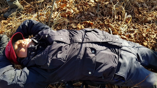 고픈 배도 채웠고 핫팩까지 붙인데다 언제 불었냐는 듯 바람도 잠잠한 능선 위를 따뜻한 햇살까지 받으며 걸으니 살 것 같다. 이 포만감과 아늑함에 젖어 기분은 좋아지는데 몸은 나른해 지고 졸음이 온다. 고치령 팀은 전혀 잠을 못 잤고 본대도 잠을 설쳤다. 틈만 나면 그 추운 곳에서 앉았다 하면 잔다.