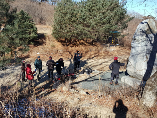 이민우 대원은 코 위로 손수건을 감쌌다. 안경에 서리는 김 때문이란다. 흡사 전쟁터에서 부상당한 얼굴을 감싼 부상병의 모습 같아 측은하기도 하고 우습기도 했는데 끝까지 하고 간다. 즐겁게 수다까지 떨어가면서.