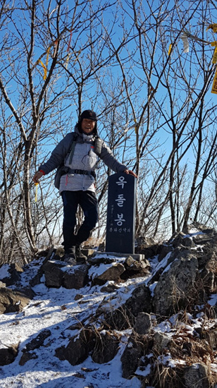해는 떠올랐으나 정상 부근은 여전히 칼바람이 몰아친다. 잠시라도 머무르고 싶은 마음은 추호도 없다. 일사천리로 인증 샷을 하고 아침 식사 할 곳을 찾아 박달령으로 향한다.