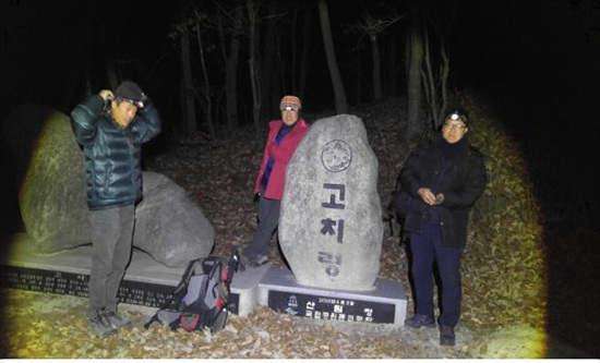 갈곶산에 도착하니 본대 합류거리가 1km. 다 왔거니 하는데도 추위와 지친 체력에 참 멀구나 하며 어둔 산행길을 재촉한다.