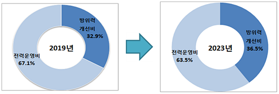 특히, “자주적 방위역량 강화를 위한 기반을 구축하기 위해 방위력개선비에 재원을 집중 투자한다”는 목표로, 2019년 현재 국방비 중 방위력개선비 점유율 32.9%를 2023년에는 36.5%로 늘린다는 계획이다.