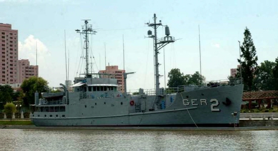 1968년 1월 23일 원산 인근 공해상에서 해양조사선으로 위장해 정보수집활동을 벌이다 북한군에 나포된 함정이다. 11개월에 걸친 북.미 교섭 끝에 승조원 82명은 석방됐으나, ‘푸에블로호’는 미국에 대한 승리의 상징으로 아직 북한에 남아 있다.