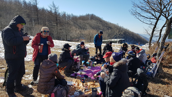 | 일시 2019년 1월 27일(일) 구간 화방재 – 수리봉 – 만항재 – 함백산 – 중함백 – 은대봉 - 두문동재 거리 11.98 km 시간 6시간 20분 (휴식시간 포함) 인원 19명 |