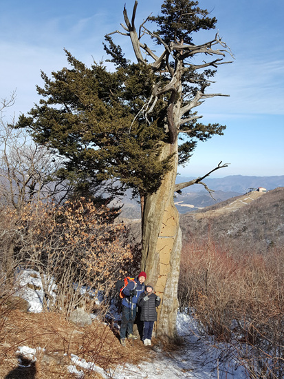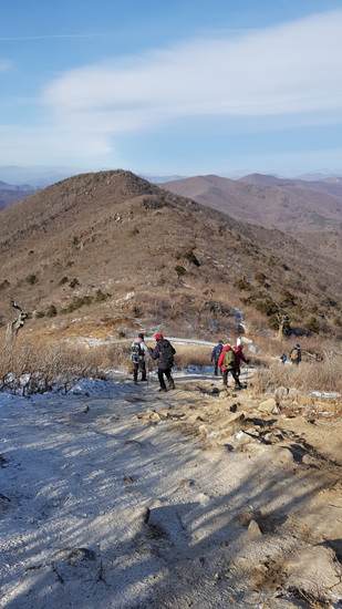 완전한 겨울이다. 휑한 느낌이 강하다. 나무들이 눈이불을 덮지 못해 더 그런 것 같다. 초반은 역시 오르막이다. 꽤 급하다. 항상 씩씩하게 산을 탔던 민성이도 걷기 싫다고 칭얼댄다. 계속 가야한다. 아직 갈 길이 멀다.
