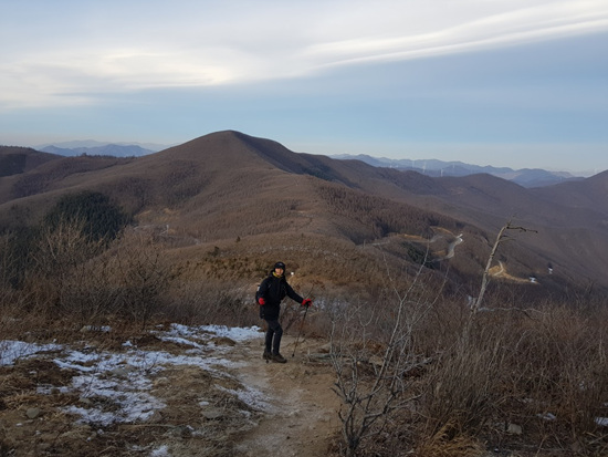 은대봉이 얼마 남지 않았다. 대체로 평지가 계속됐다. 쉬운 길 맞는 것 같긴 한데 오늘따라 끝이 안 보인다. 점점 지쳐간다. 이민우 대원과 발을 맞춰 걸으며 힘을 낸다. 축구를 하셔서 그런지 젊은 나보다 훨씬 잘 걸으시는 이민우 대원. 이번 산행에 큰 힘이 되어주셨다.