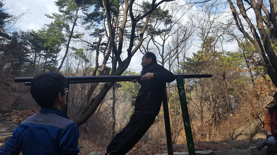 그러나 회장님은 이곳에 오시면 늘 하시던 평행봉으로 오늘도 멋진 ‘후리‘ 기술로 노익장을 과시하며 옆에서 구경하는 젊은 사람들을 부끄럽게 하신다.