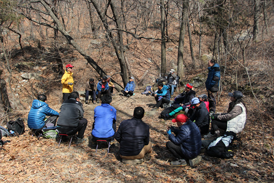 식사를 마친 후 김규철 선생님 장례 절차를 상의하기 위해 회장님과 이정태 대장이 먼저 하산하였고, 바로 산상강연이 진행되었다.