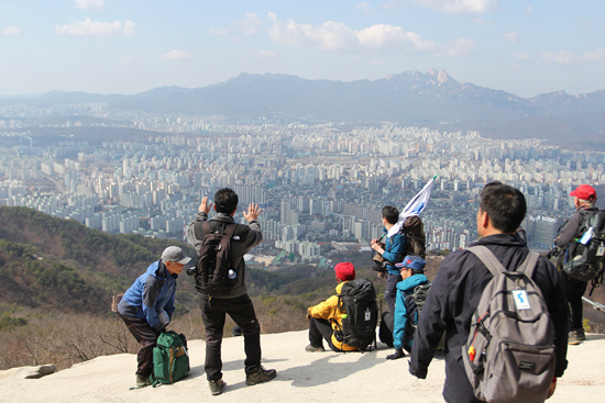 ▲ 전망대 바위에서 바라본 서울시내. 아파트가 즐비하다. [사진제공-6.15산악회]