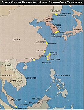해상에서 북한 선박과의 환적에 관여한 배들이 정박한 항구들을 표시한 지도도 포함됐다. 러시아의 블라디보스톡항과 나호드카항, 한국의 부산항과 여수항, 광양항 외에 중국과 홍콩, 대만, 싱가포르의 일부 항구가 포함됐다.