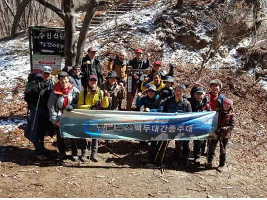 오늘 산행 참가자는 18명으로 내가 참가한 대간 구간 중 최대인원이 참석했다, 사당에서 출발한 버스 안에서 처음 참가한 대원들이 인사를 한다. 그중 6.15산악회 양호철 대원은 버스 안에서 자신의 별명이 ‘뺑끼’라며 너스레를 떨어 모두에게 웃음을 안겼다.