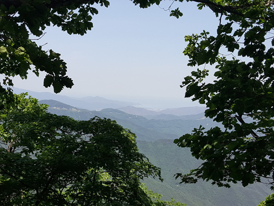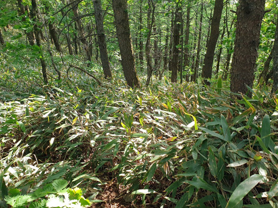 1022봉을 내려서면서 넓게 분포한 조릿대 길을 지나고 조망이 좋은 곳에서 잠시 땀도 식힌다.