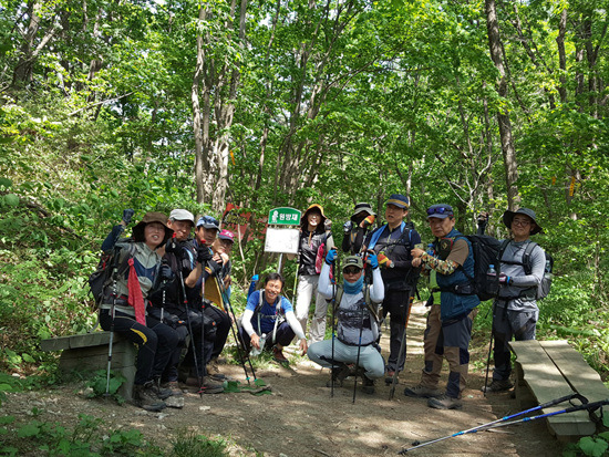 한데모여 단체사진을 찍고, 근처 ‘백복령 쉼터’에 자리한 지역음식점에서 시원한 메밀국수로 산행을 마무리 한다.